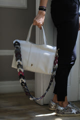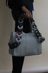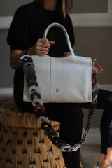Versión chica de crossbody estilo tote con asa larga removible para el hombro o cruzada. Interior en gamuza con un compartimiento de cierre y dos adicionales a un costado.