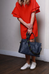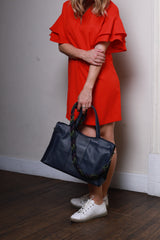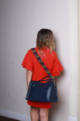 Versión grande de crossbody estilo tote con asa larga removible para el hombro o cruzada. Interior en gamuza con un compartimiento de cierre y dos adicionales a un costado.