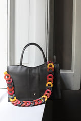 Versión grande de crossbody estilo tote con asa larga removible para el hombro o cruzada. Interior en gamuza con un compartimiento de cierre y dos adicionales a un costado.